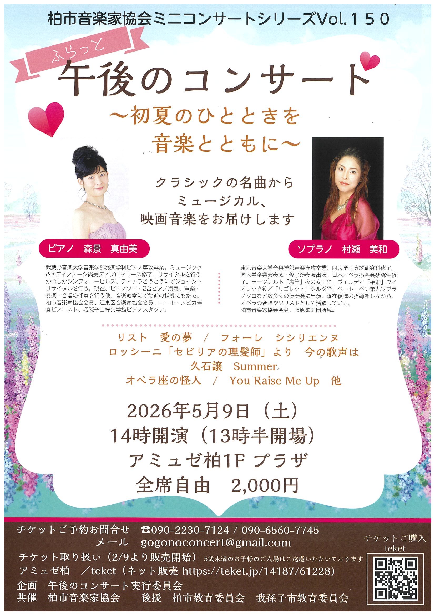 入場料: 2,000円 全席自由 (5歳未満のお子様のご入場はご遠慮いただいております)