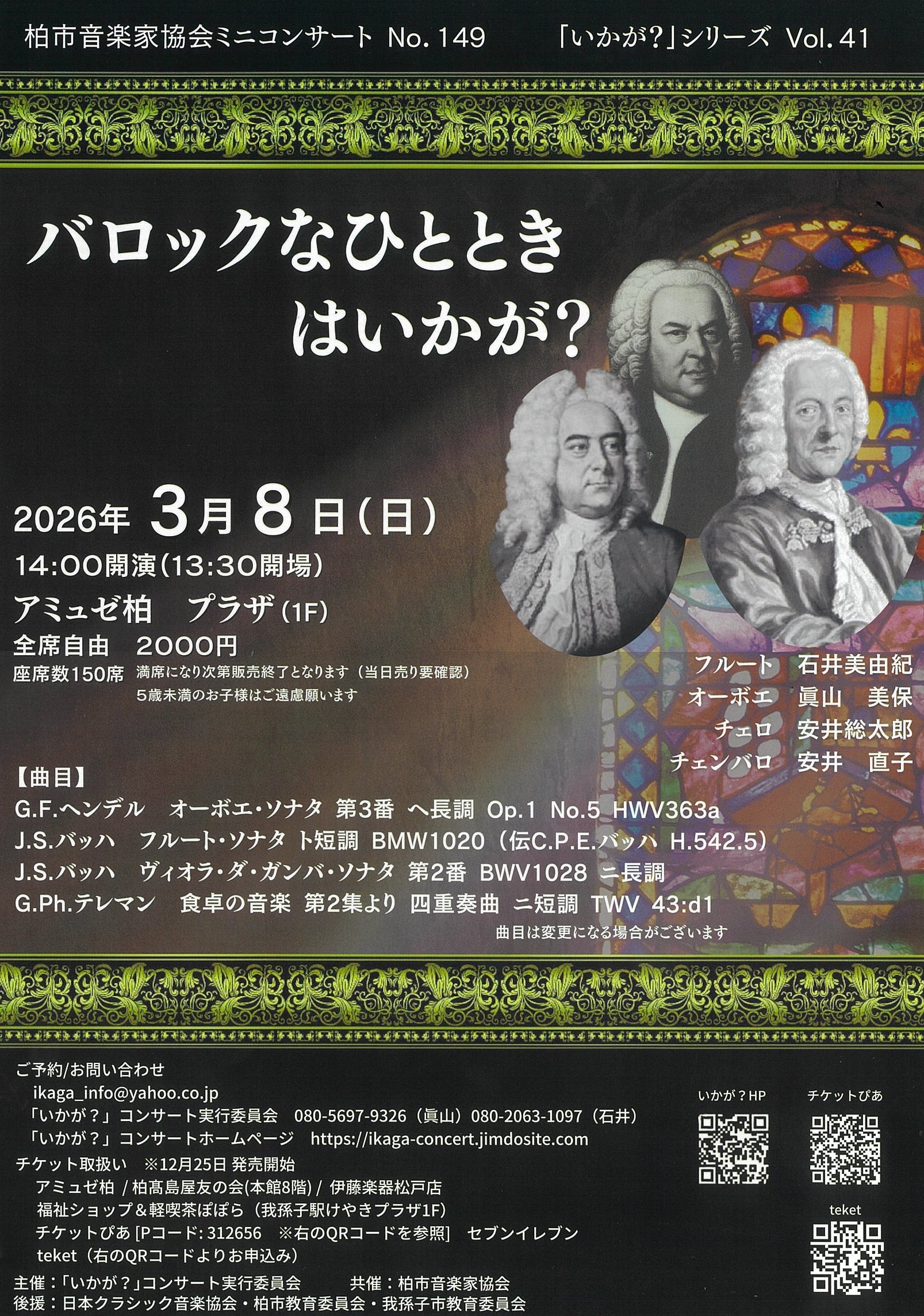 柏市音楽家協会ミニコンサート NO.149 「いかが?」シリーズ Vol.41 バロックなひとときはいかが?