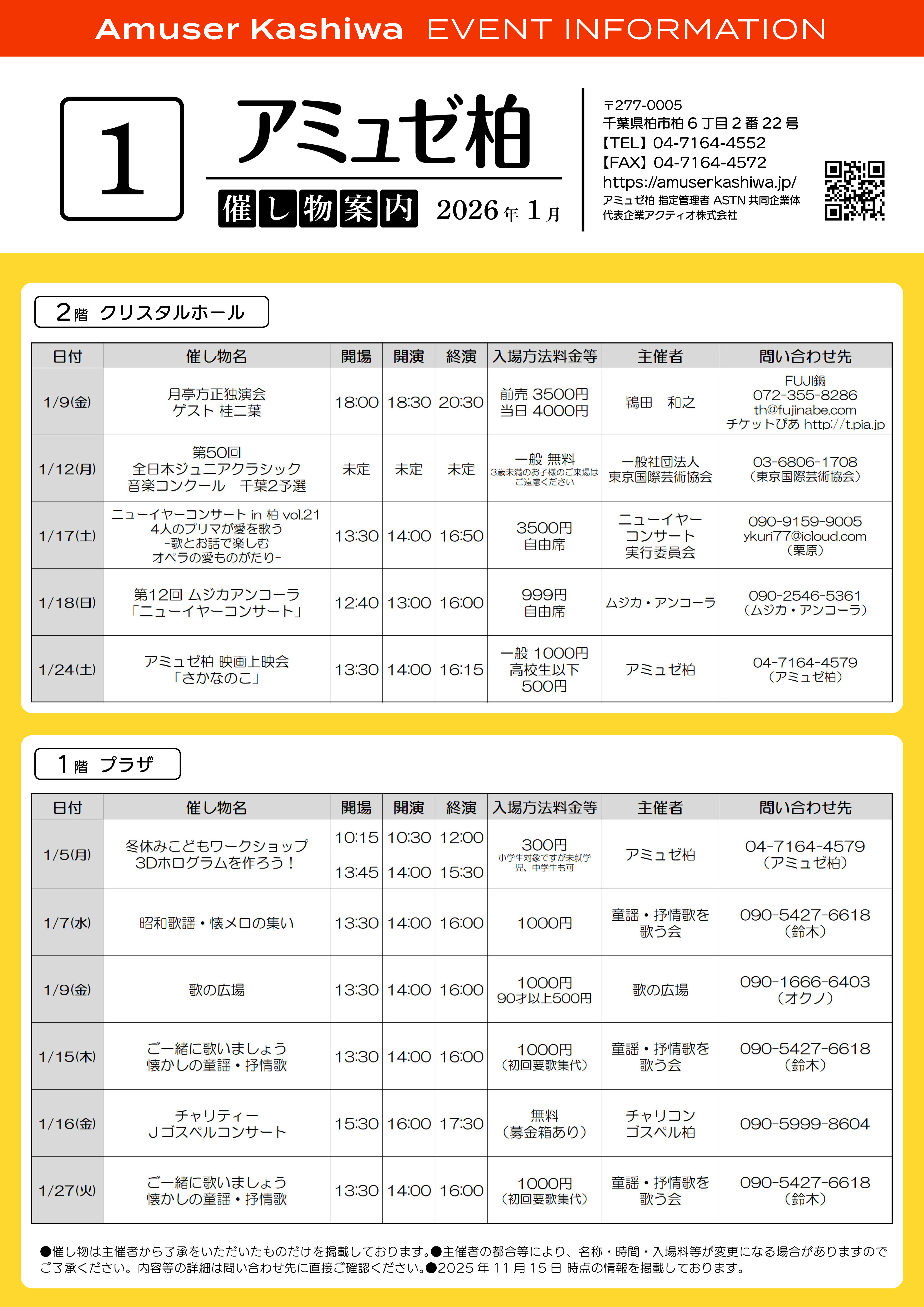 2026年1月 催し物案内