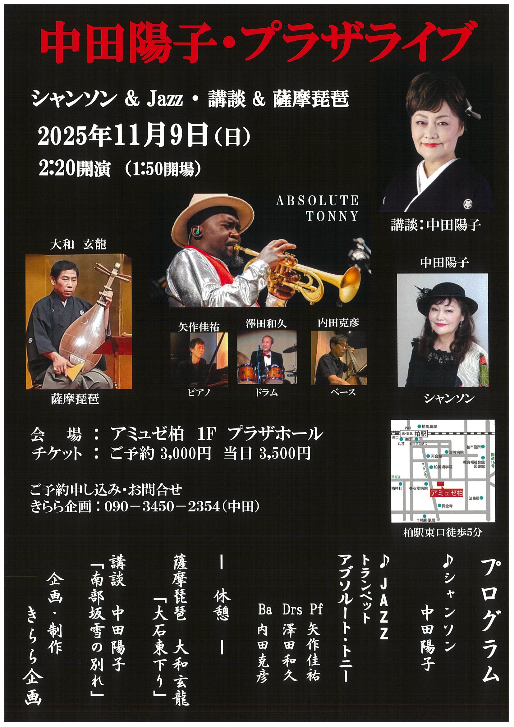 中田陽子・プラザライブ シャンソン&Jazz・講談・薩摩琵琶